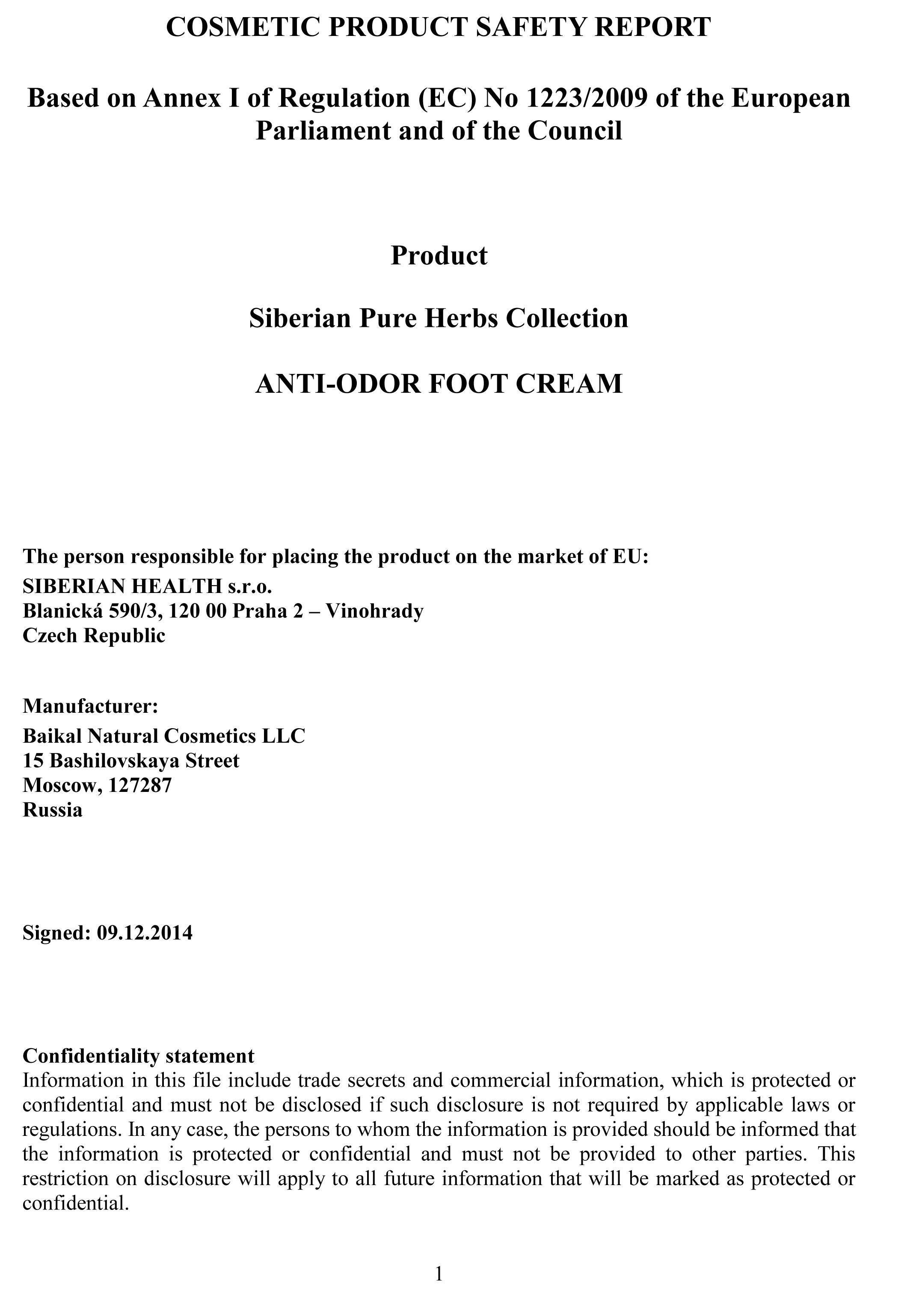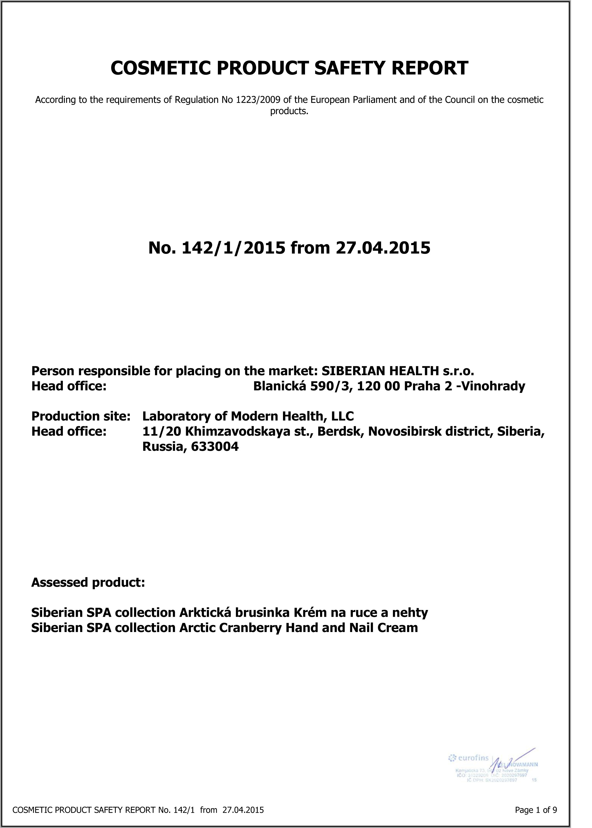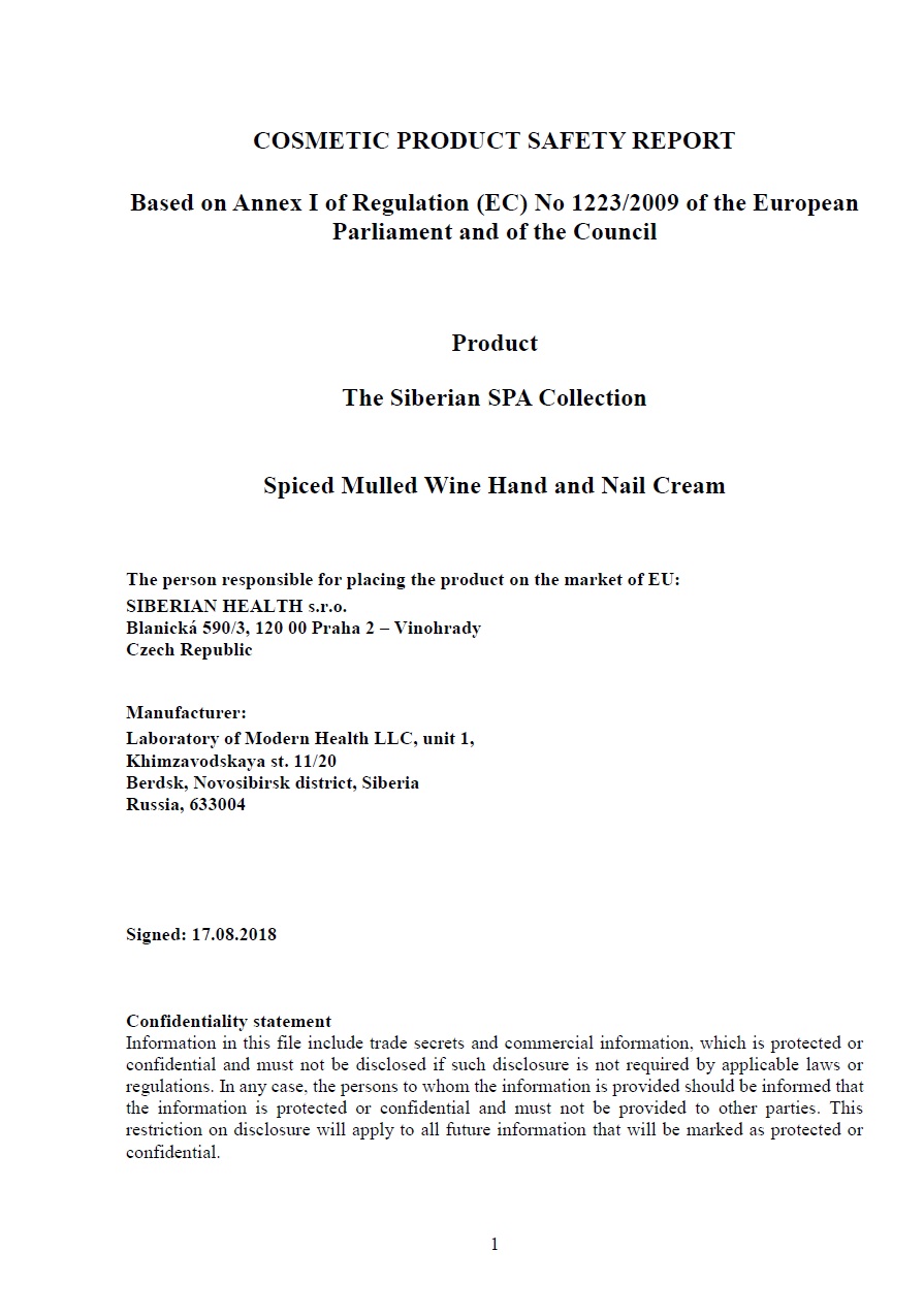 SAFETY ASSESSMENT OF COSMETIC PRODUCT